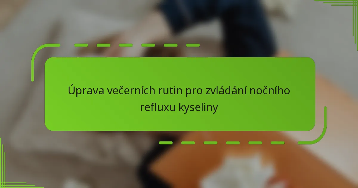 Změny životního stylu mohou výrazně zvýšit účinnost dietních úprav při zvládání nočního refluxu kyseliny. Zařazením specifických návyků a praktik mohou jednotlivci snížit příznaky a zlepšit celkovou kvalitu spánku.